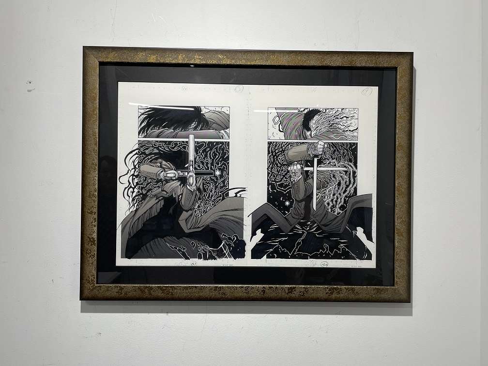 原画 額装 2025/06/10 漫画の原画の額装のご注文をいただきました いつもありがとうございます!! 漫画の原画作品を額装させていただきました。 繊細かつ迫力あるモノクロの原画に合わせて、深みのある黒のマットと、落ち着いた輝きを持つ渋めのゴールドフレームを選定。 主張しすぎず、それでいて作品の持つ緊張感と世界観を引き立てるフレーミングを意識しています。原画ならではの細やかな筆致や質感を損なうことなく、美術品としての存在感を高める額装となりました。 漫画原画やイラスト、アート作品などの額装をご検討の方は、ぜひお気軽にご相談ください。